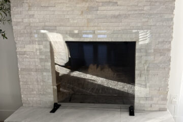 This sophisticated fireplace remodel uses natural stone to create a timeless focal point, combining structural heat resistance with expert craftsmanship for a refined, modern aesthetic.