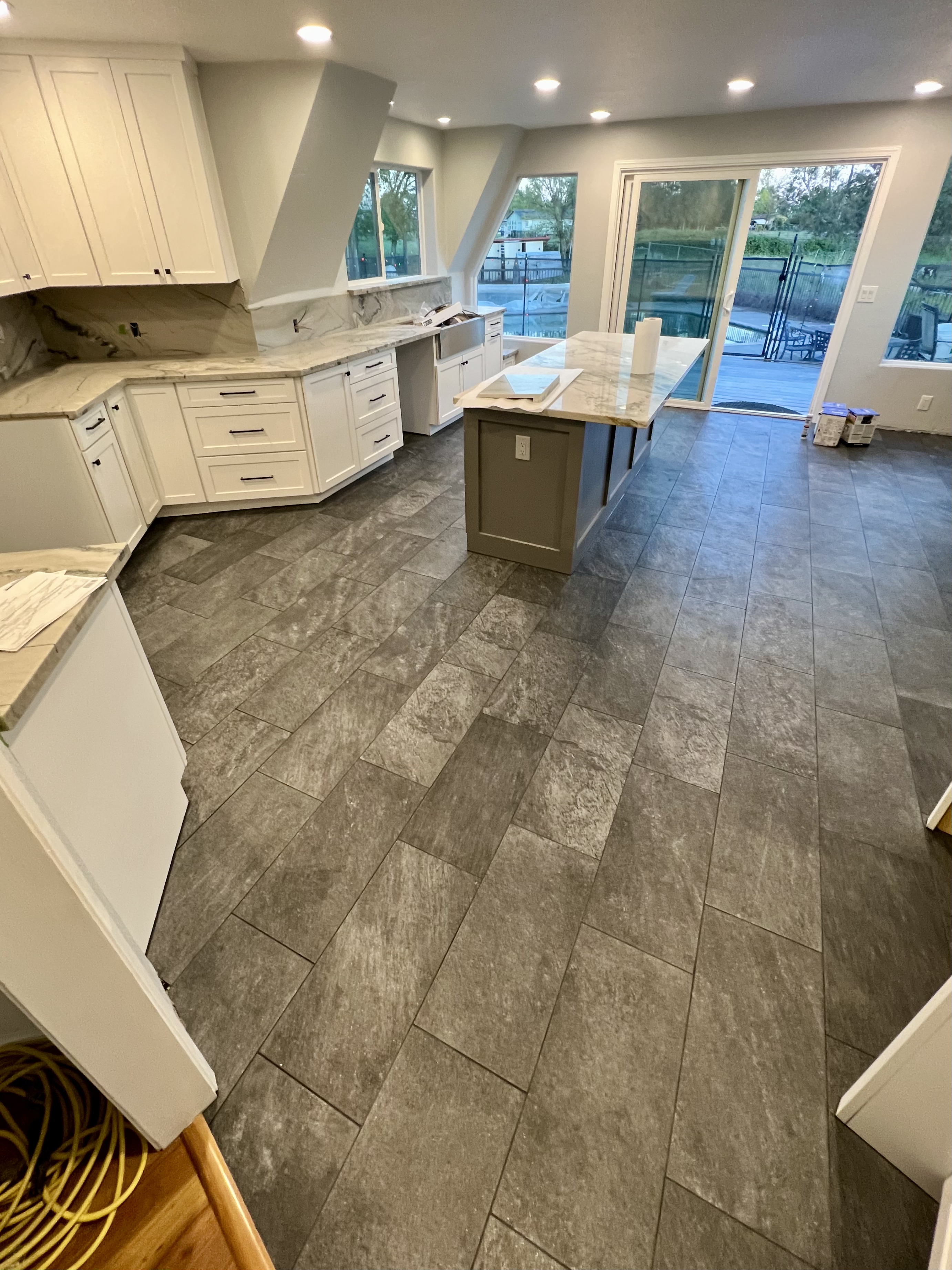 For this project, luxury vinyl plank (LVP) flooring was selected due to its durability, water resistance, and realistic wood-like appearance. This material is especially well-suited for high-traffic areas and provides long-term performance.